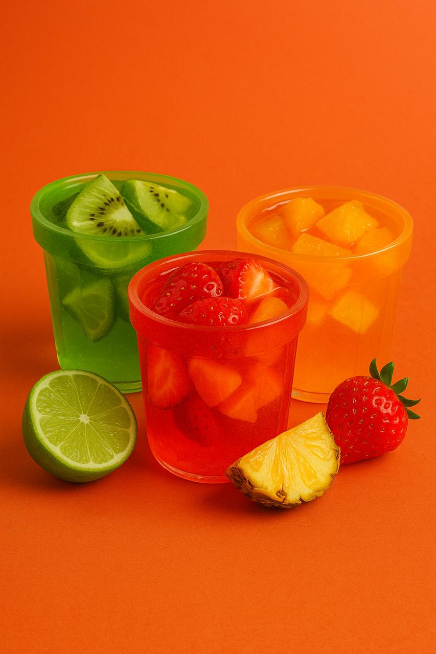 Un vaso elaborado principalmente de gelatina y saborizante natural que permite una experiencia sin igual en donde no solo cuidas a tu ambiente si no que también te diviertes y disfrutas de un sabor al comer y al beber porque no los dos al mismo tiempo